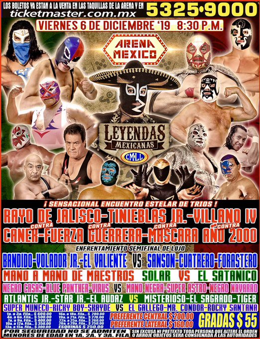 En el encuentro estelar de tríos participarán Rayo de Jalisco, Tinieblas Jr. y Villano IV, quienes se enfrentarán a Canek, Fuerza Guerrera y Máscara Año 200.